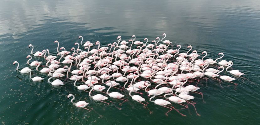 Flamingoların Van Gölü kıyılarında renkli dansı hayranlık uyandırıyor